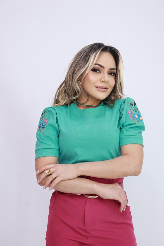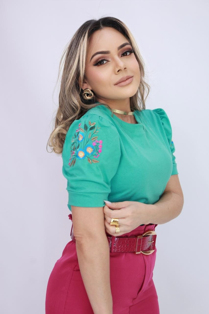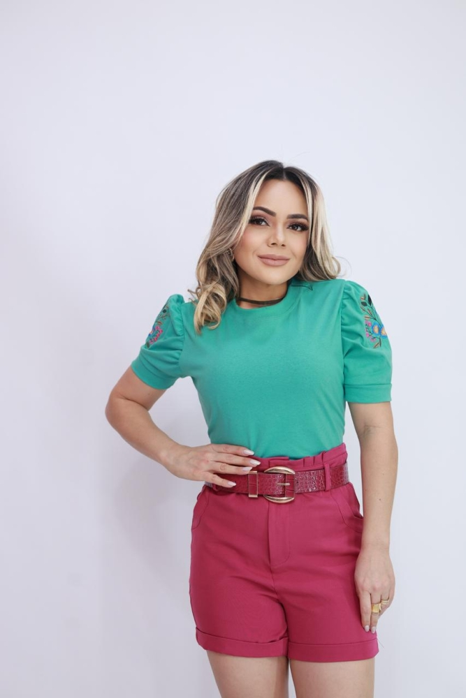T-SHIRT ALGODAO BORDADA NA MANGA