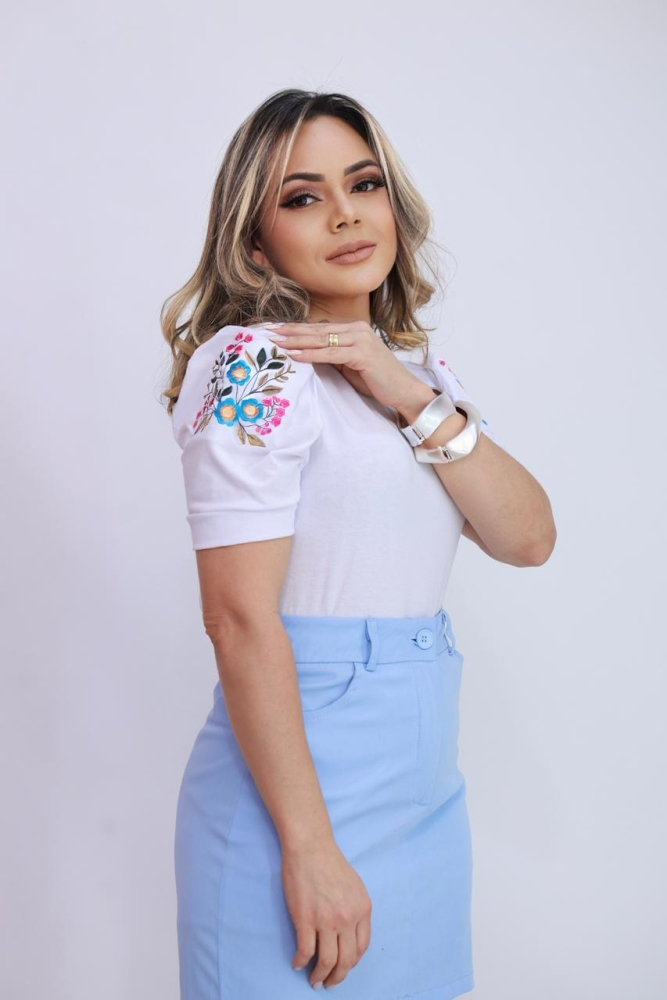 T-SHIRT ALGODAO BORDADA NA MANGA